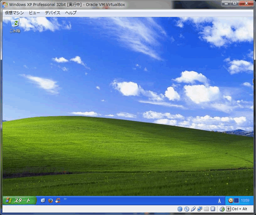 物理マシンと同様にOSセットアップを続行します。なお、仮想マシン上でマウスをクリックするとマウス、キーボード入力が仮想マシンに送信され、ホストキー[ALT+CTRL]キーを入力すると物理マシンに入力が切り替わります。