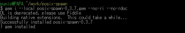 DL is deprecated, please use Fiddle Building native extensions. This could take a while... Successfully installed posix-spawn-0.3.7 1 gem installed