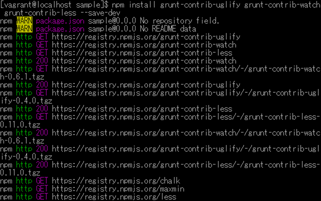 --save-devオプションを付けて、Gruntコアパッケージをインストールします。